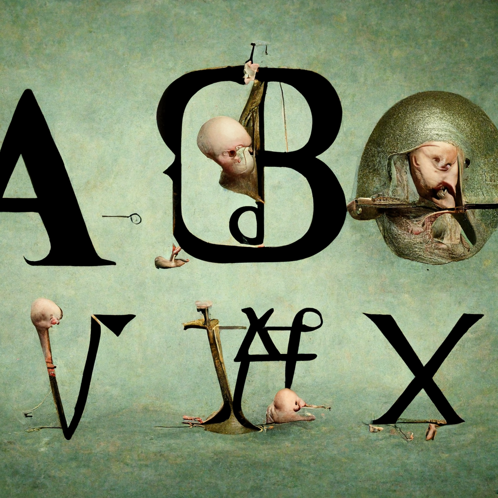 “Futuristic and mediaeval alphabet in a Hieronymus Bosch and Matthew Barney style” - Made with Midjourney