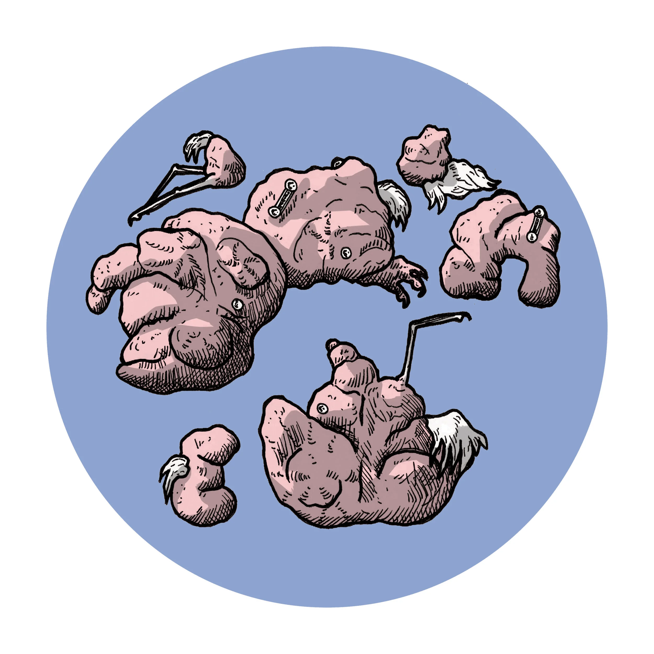 Illustrated book, accompanied but installation - pen and ink, digital colouring, welded steel, motor (2017). The Bite Back Movement, Alexander Augustus and Seung youn Lee, created in collaboration with Dr. Kee-Woong Kim, from the Vital Signals Centre of the Korea Research Institute of Science and Standards (KRISS). This project was completed in Dajeon (Korea), for the Artience Foundation.